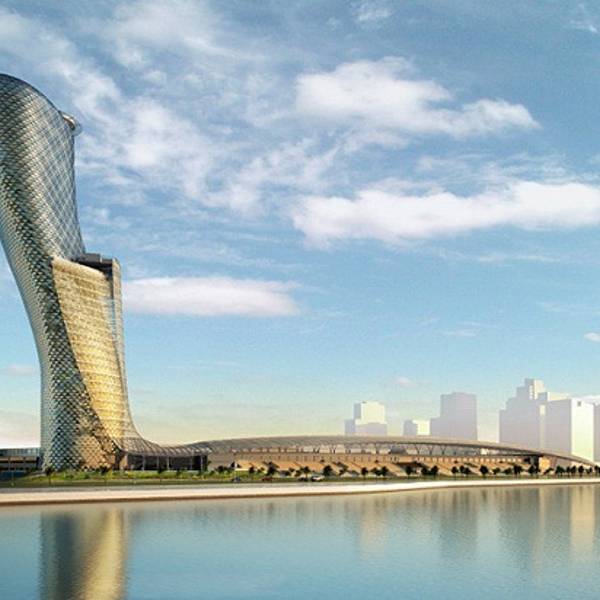 首都门是吉尼斯世界纪录认证的“全球倾斜度较大的人工建筑”,不仅有着4倍于比萨斜塔的斜度,更有柔和的曲线,给人强烈的视觉冲击和享受,是阿布扎比明信片上的风景之一。 倾斜角度达18度 该建筑是一座集酒店和办公场所为一体的综合建筑,高160米,共35层,其整体结构从12层开始朝西倾斜角度达18度,而比萨斜塔的倾斜度只有4度。当然,与比萨斜塔的倾斜不一样的是,“首都门”早在设计之初就计划要建造成“世界上倾斜度较大的建筑”。 保持倾斜的原理 为了在结构上使该设计可行,建筑的核心反方向倾斜,越到顶部越直。它的基础是7层的混凝土,并用密网格的钢筋加固。还有490个100英尺深的桩,以此承受重力。