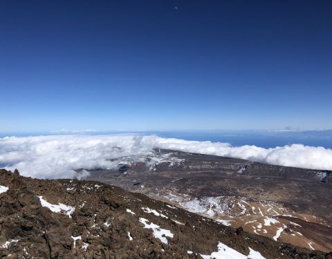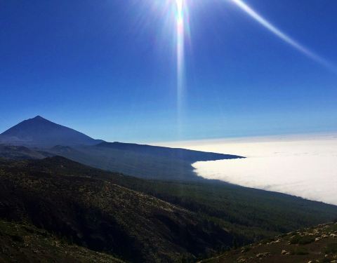 西班牙最高峰,高3718米,是一座活火山,风光秀丽,从山上俯瞰海岛,海天一色,是清澈的一片碧蓝。