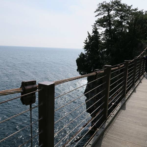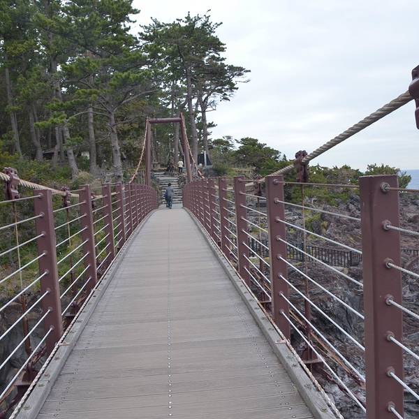 城崎海岸地处伊东,以海水和富于变化的海岸见长。有一段几公里的森林步道,郁郁葱葱,曲曲折折,让我想起小说里高中生和舞女曾经走过的“踊子步道”是不是就是这样?路上的警示牌,警告游客小心掉进海里熔岩流受到海水侵蚀,海岸上各种小崖细流,最终成型为如今断崖绝壁的壮观地理风貌。海岸边,峭壁礁石嶙峋,惊涛拍岸,阴天,影响了海水的蓝度。城崎海岸主要由吊桥、灯塔、鱼见小屋、海洋公园等设施组成,因其特异的风景吸引来大量的观光客,也是很多影视剧的人气拍摄地。沿海散步主要以“門脇埼灯台”和“門脇吊橋”中心,全程9公里的城崎野餐路线和城崎自然研究路是让人们在不知不觉中享受城崎海岸的自然奇迹。吊桥十分惊险刺激,可以从正上方感受城崎海岸的凶险有不少游客会站在海边的礁石上拍照留念,其实还是有风险的,要千万小心 展开