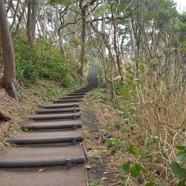 风景不错的古步道,此处的森林还是原始林坐伊豆急行来到城崎海岸,沿着海岸徒步了一段城崎海岸线步道,这是日本江户时代的老步行道,黑船来临的消息从下田传递到江户途径了这一段。 风景不错的古步道,此处的森林还是原始林。