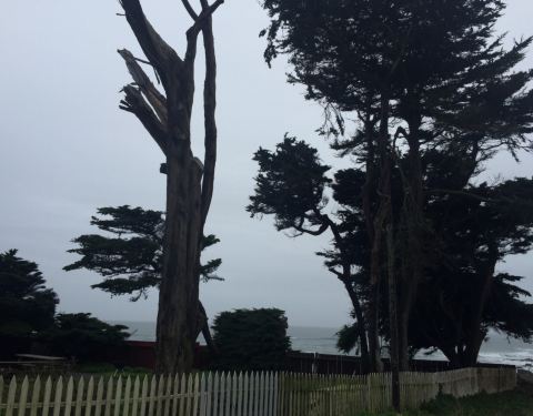 一路从旧金山开出来,非常舒适,速度能起到60英里,注意一路上有很多限速的标示,别做第一个超速的车。一路上的景色非常美,不管在哪里停都能够看到像下面这样明信片的景色,除了大到要把人刮起来的海风外......