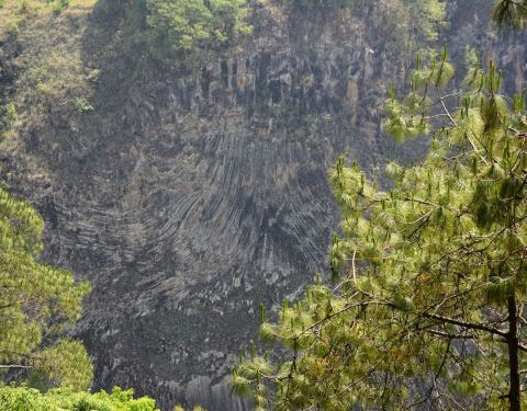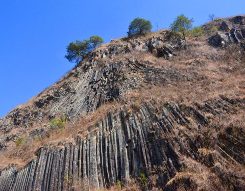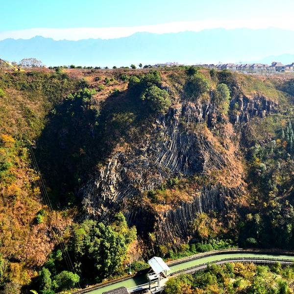 观赏腾冲柱状节理一般都是在河对岸山坡上的观景台,就在公路的旁边腾冲柱状节理是我国规模最大,保存最好,年代最短的一大片柱状节理,这是火山爆发时形成的特别的岩石结晶。观赏腾冲柱状节理一般都是在河对岸山坡上的观景台,就在公路的旁边。
