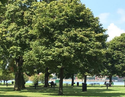 小岛被美丽的底特律河环绕,微风吹拂,河水荡樣,大片的草坪上,散落着长椅,坐在椅上环视对岸,复兴...小岛被美丽的底特律河环绕,微风吹拂,河水荡樣,大片的草坪上,散落着长椅,坐在椅上环视对岸,复兴中心建筑群、加拿大城市尽收眼里。