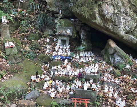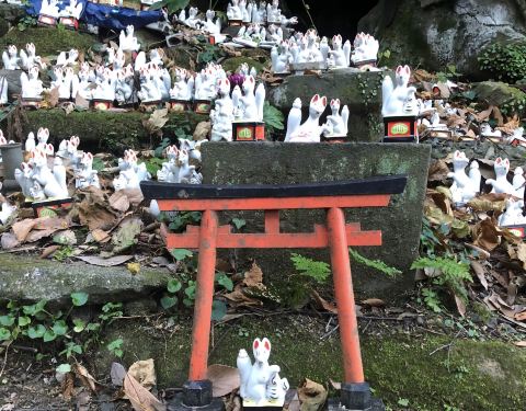 佐助稲荷神社是镰仓的神社之一,也是求姻缘特别灵验的神社之一,距离镰仓大佛可步行到达。当年源赖朝被流放小岛之后,有个老人出现在他梦里建议他起兵讨伐平家,后来取胜之后源家建立幕府,源赖朝找到了稻荷的宗祠,建立了稻荷神社,因为源赖朝小时候被称作佐殿,所以神社名字前面加了佐助两个字。 神社在一片密林包围之中,有好几重朱红色鸟居,成为了神社的一大景观,路边会有类似狐狸造型的白色小雕像若干以及一个一个小小的顶上铺着青苔的小石房子,环境清幽,比起镰仓大佛这样热门的景区,更适合在这边漫步。