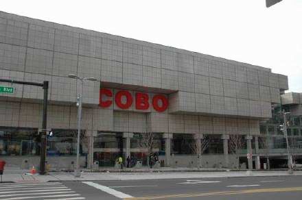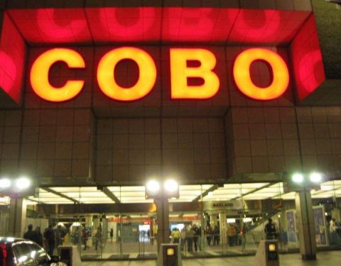 科博中心靠近地铁站,站牌为Cobo Center People Mover Station。