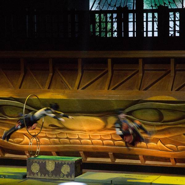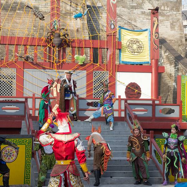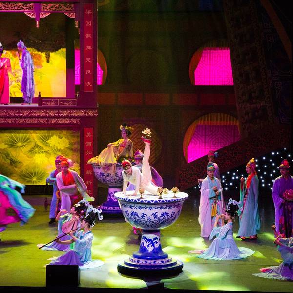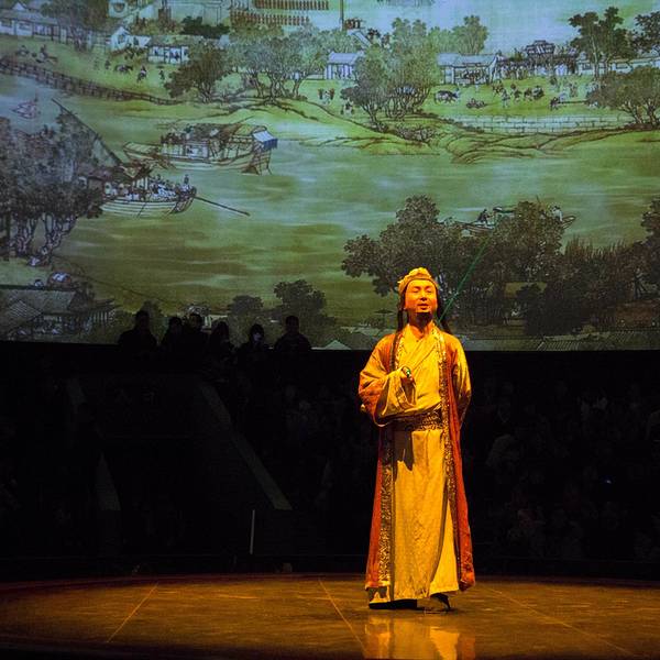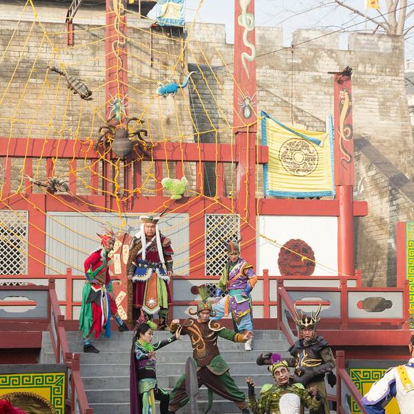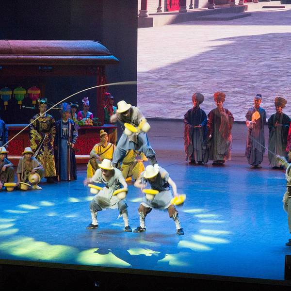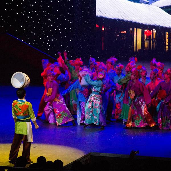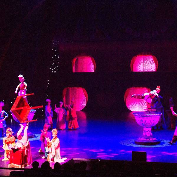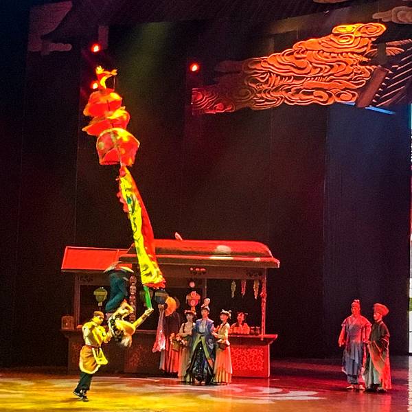 演出很精彩,尤其是“汴梁一梦”,超精彩,里面含了很多杂技表演,第一回现场看这种绝活儿表演,激动呀。演员们专业水平很高,确是台上一分钟,台下十年功,不得不佩服。“笑破天门阵”反而有点儿无厘头,恶搞的程度较高,笑笑就完了。但是观看表演的场地很小,保安工作不到位,人都爆满了还不断放人进来,结果围栏前都站的满满的,我们坐在观众席上都看不到,只好站起来看,后面的人被挡住了,也站起来,结果全体观众都是站着看完演出的。