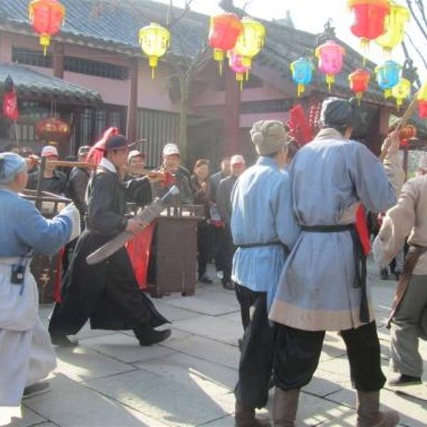 “武松救兄”是在街道上临时围起来表演的,内容呢就那回事,不过演潘金莲的那位姐姐化妆化的可真寒碜。