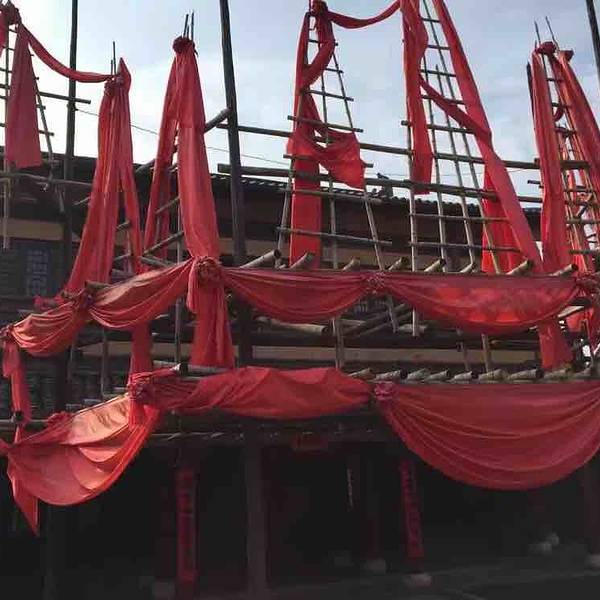 远处府邸正在拍摄影视剧,运气好的话可以遇到明星艺人。