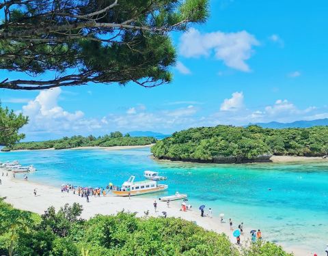 到石垣岛必须去游川平湾,而且必须是天气晴好时去!色调不同的蓝色和绿色渐变成层层叠叠的海面一望无际。这里被选为日本百景之一,同时被“米其林绿色指南・日本”评为三星级景点,徒步沙滩踩沙踏浪、泛船碧波之上,透明的海水、蓝天和白云,能让人窒息啊!
