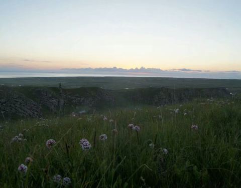 这里海拔超过3400米,背靠辽阔的青藏高原,是俯瞰广袤青海湖的最佳地,周边都是漫山的花海草甸,偶尔也能看到藏民修的白塔和布放的五色经幡,景色非常漂亮,就是气温比较低。