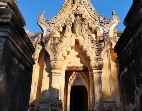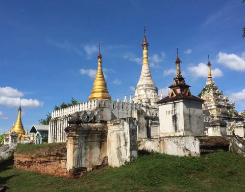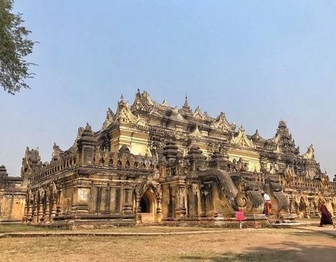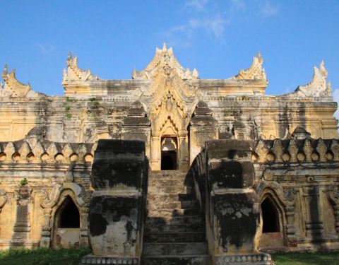 因瓦古城曾是闻名的因瓦王朝的古都。因为遭到二战破坏,古城的大批建筑被严重的破坏,但这些零散的废墟遗址隐藏在郁郁葱葱的树木间、农田里,让人不得不感叹时间的力量。马哈昂美寺(Maha Aungmye Bonzan)是一座类似于吴哥窟的寺庙,只是要小得多。这是一座颜色鲜明的建筑,尽管历经风雨,但依然可以看出那艳丽的黄色和雄伟的气魄。