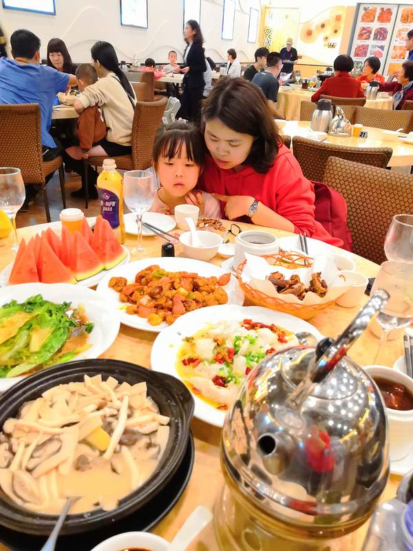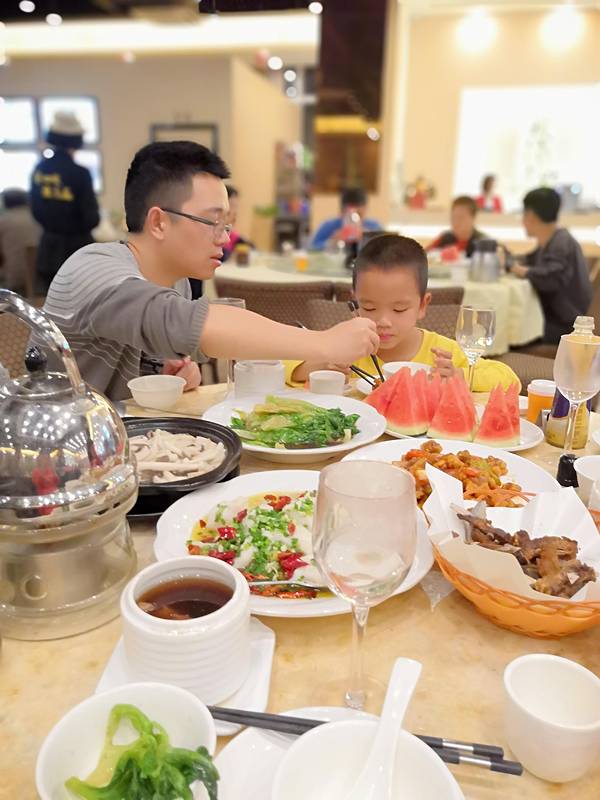 上菜速度很快。儿子说,要拍照,假期作业里面有这个!这父子看着这一桌菜,我是一点胃口也没有,只喝了一杯水。