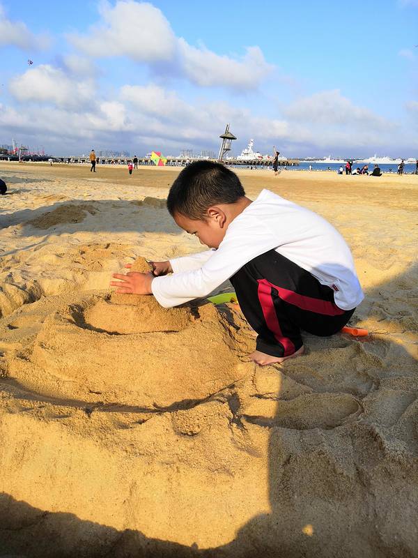 霸气不?评价还是很好的,湛江鸡,好评!疯狂的人,还真是跳起来了。饭后,又打车回来了渔港公园带上两个娃,收拾好出门,也是十点左右了。这才叫蓝蓝的天上白云飘。霸气不?疯狂的人,还真是跳起来了。大海的颜色,真的是多变的。给小朋友们买了铲子和桶,小朋友们玩得更嗨了,到吃饭时间,都不愿意走。