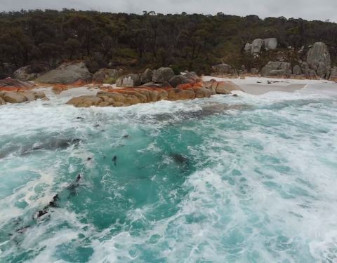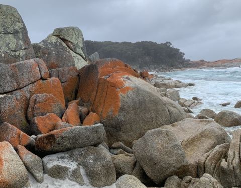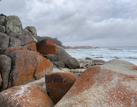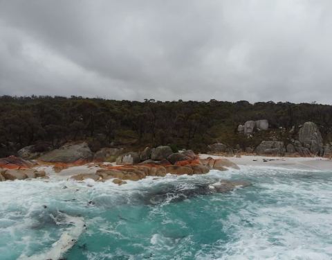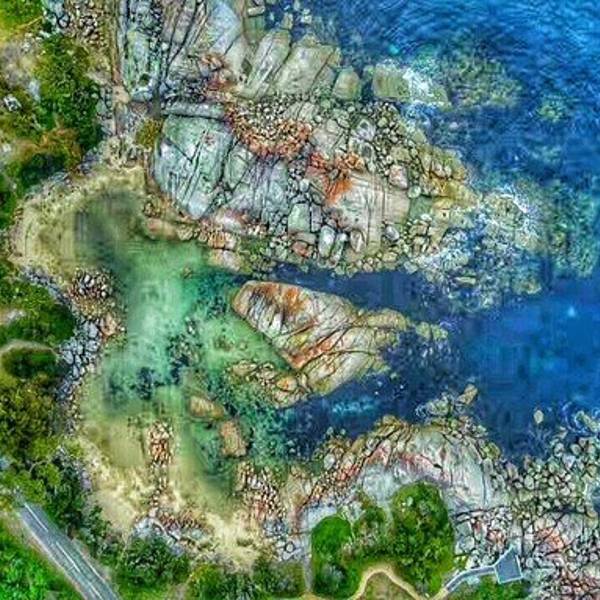 火焰湾位于塔斯马尼亚东北部,海滩上的石头有被火烧红等我感觉