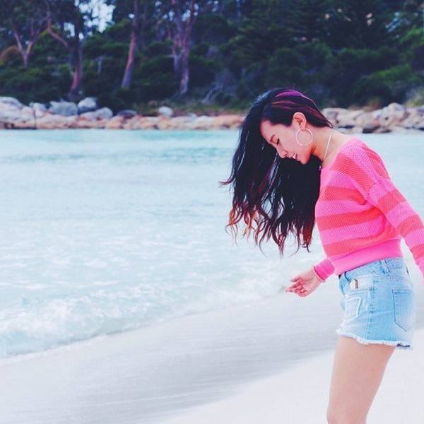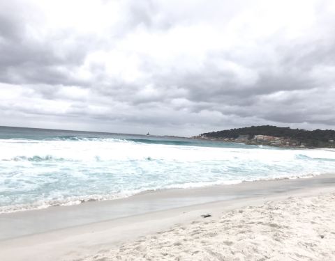 顶着34度的烈日来到火焰湾,受不了湛蓝海水和洁白沙滩的诱惑,换了沙滩裤就冲下去玩水,结果被塔斯曼海的冰冷海水直接教育了....我们这小身板在岸边玩玩沙子就好,这个离南极洲不远的海域只适合企鹅玩