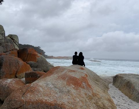 火焰湾在塔斯马尼亚东北部,以石块发红好像被火烤红而出名,火焰湾海滩以当地人锻炼和遛狗的人为主,我去的那天基本没有其他游人