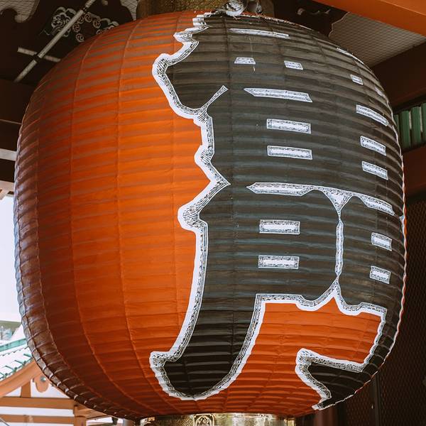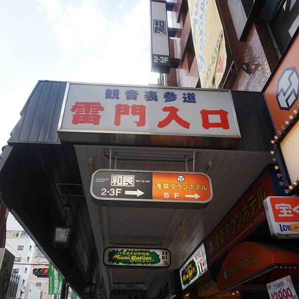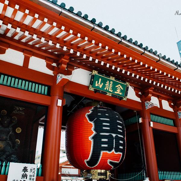 浅草寺雷门是东京著名的观光点,正式名称为“风雷神门”,是浅草寺入口的大门,红漆八脚门是典型的宽边瓦顶。左右两处分别是威风凛凛的风神和雷神二将,共同守护着浅草寺。 据说是在镰仓时代(1185年-1333年)迁移过来之后开始供奉风神和雷神,也有说法是为了保护寺庙免受洪水和台风等自然危害,才将它们作为护法善神。 1865年12月12日发生的田原町大火曾一度将雷门烧毁,现在的大门是于1960年,也就是距火灾发生95年后,由松下电器创始人松下幸之助捐赠修复的。因此,在其大灯笼的金色底座上面可以看到印有“PANASONIC”字样。 门前悬挂的这个巨大红灯笼是浅草的一大标志,高3.3 米,重达100公斤。上面有黑底白边的“雷门”二字,远远就能望见,非常醒目,为浅草增添了不少气派。每到夜幕,灯笼亮起的时候,特别迷人。 踏进浅草寺,是一条拥有老街风情的仲见世街,共有89间销售诸如人形烧、糯米糖、樱花饼等日式点心、纪念品、特色服饰等等东京特产的小店,可以买到很多伴手礼。 参拜之地 每年会有很多游客和当地人前来此地参拜,向风神和雷神祈求保佑天下太平,免受遭风雨之灾,祈祷五谷丰登。白天非常热闹,门口照相的人特别多,如果想避开人流,建议清晨或夜晚前来,人流散去,亮起红灯笼,别有一番风味在其中。