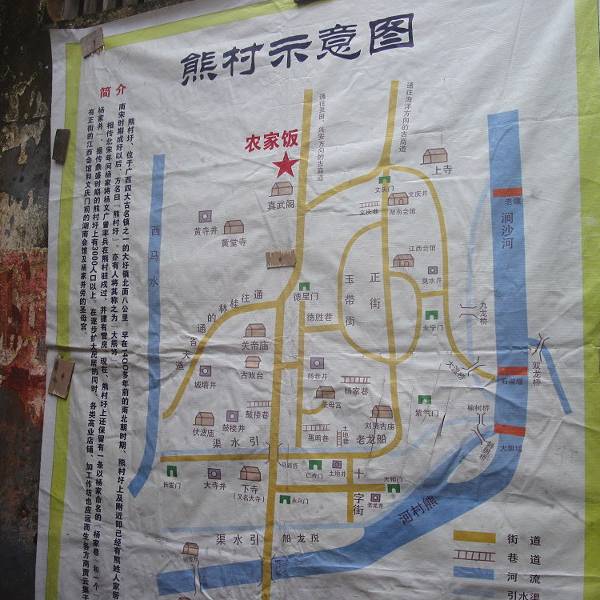 从大圩骑摩托车去花了十几分钟,那里有个“雄村”和“熊村”我觉得应该是同一个村,马路边都是烂房子,没有指示牌。未被开发,村里的路很小而且路面不平,外面也没有保管车的,里面还很多狗。我们找到路边的德星门就打道回府了,路边不起眼的地图,标识了很多寺庙,但是看不懂路怎么走。