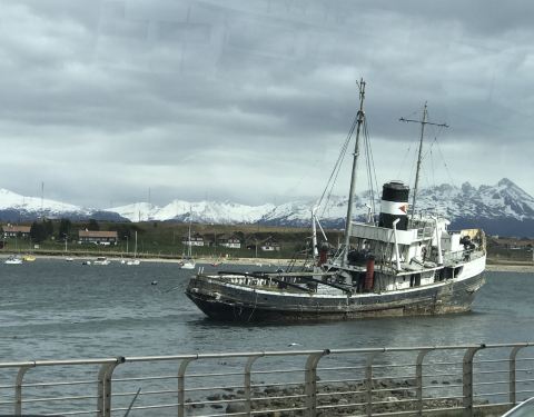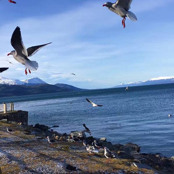 坐过n多小火车,这个倒也没啥特别不过却是1910年USHUIUA运送囚犯的蒸汽列车,我们从「世界终端」之站出发,最后到达「公园站」,一路荒芜一片但景色却很美。两个tour连着没时间吃午饭,回来路上买了一个 阿根廷 Lamp馅包子,坐海边边吃边等船,一群海鸟冲了过来,可能他们几天没吃饭了吧!但我更饿,就让它们起开了[皱眉] 展开