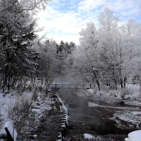 中途又经过了砂汤,而且还有时间在照几张。一早醒来,发现窗外树上挂满了白霜,于是决定趁车来之前去照相一早醒来,发现窗外树上挂满了白霜,于是决定趁车来之前去照相。之后坐上预定好的Twinkle Bus出发去知床斜里坐流冰慢车号。中途又经过了砂汤,而且还有时间在照几张。