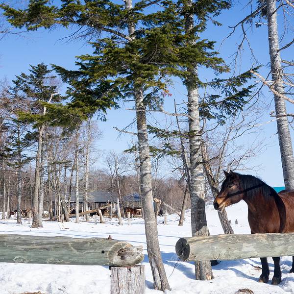 不知道这边是个私人牧场,还是对外开放有娱乐项目的牧场…总之不管那么多啦,进去看看再说~牧场里有好几匹马正在悠然的吃着草,觉得在这边整个生活都慢下来,每天可以有很多时间慢慢的做自己想做的事情…lz猜测不远处的房子应该就是牧场主人的家了吧...整个牧场还挺大的,估计到夏天应该会对外开放呢~牧场周围有很多各种各样的脚印,应该时常有各种各样的小动物出没吧,想象着这样的场景,就觉得是一副很温暖的画面呢,道东少了大城市的喧嚣与繁华,却更接近美丽的大自然。特别美好的一个清晨,安静的欣赏着这样一个宁静安详的小村庄,生活在这里应该整个人都会变的特别淡泊单纯吧。小张同学的羽绒服可以正反穿,这么亮的黄色估计除了这趟旅行再也不可能穿出去了^_^看着时间差不多我们就返回酒店取了行李前往车站了,匆匆一瞥就离开这个安静的小村庄其实心里是有些不舍的,有缘再会啦!