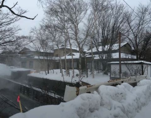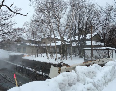 川汤温泉车站外积雪很多,整座温泉小镇,人非常少。温泉出水口也做了独特的设计。车站一端有室内足汤等民宿包车来接我的空挡,本想去喝个下午茶,无奈当日定休,没有开门,只能小小散步后跑到月台一旁的足汤去泡脚了。
