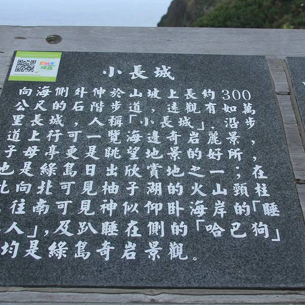 小长城位于绿岛东部,沿绿岛环岛公路逆时针行至海参坪,可看到一宽阔的观景平台,从观景平台沿一由石...小长城位于绿岛东部,沿绿岛环岛公路逆时针行至海参坪,可看到一宽阔的观景平台,从观景平台沿一由石板铺就的两旁建有栏杆的长约三百米的步道,此即小长城,能够深入到海边岬角悬崖上的观海亭,可以清晰地观看睡...小长城位于绿岛东部,沿绿岛环岛公路逆时针行至海参坪,可看到一宽阔的观景平台,从观景平台沿一由石板铺就的两旁建有栏杆的长约三百米的步道,此即小长城,能够深入到海边岬角悬崖上的观海亭,可以清晰地观看睡美人与哈巴狗岩,绿岛必游之地。 展开