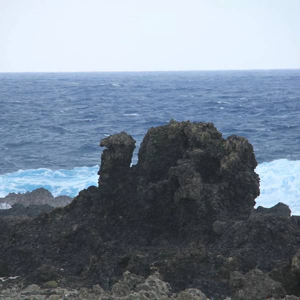 台湾文人墨客甚多,应该构造些美丽传说才行呀。看海岸礁石,夫子面壁呢跟着来到『小长城』,这里视野好极了,要逗留一会。先往山上观景平台,登高临远,来张270度全景。再顺着“小长城”往海岸孤山,就是在这里,又遇红衣哥哥,小聊了一会。