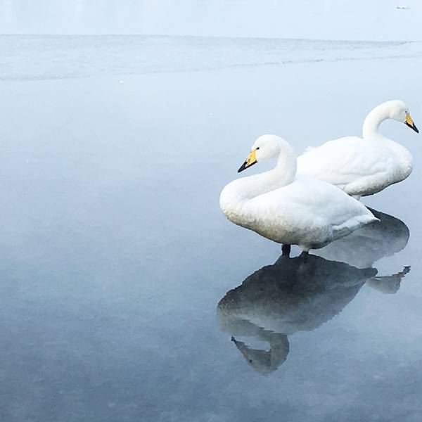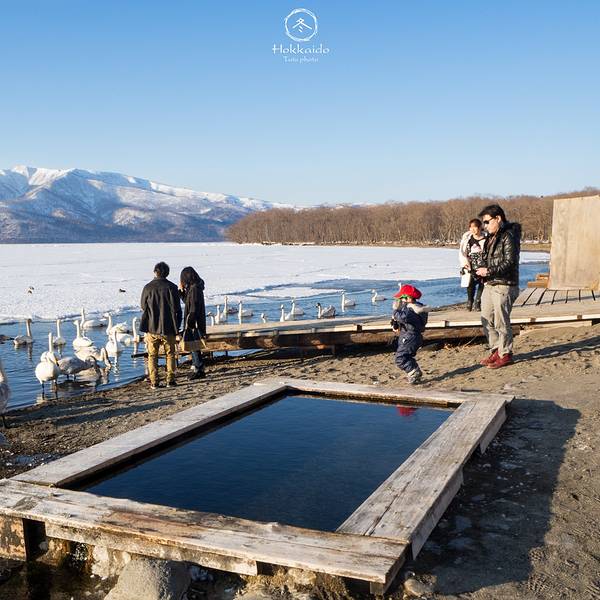 在硫磺山玩了差不多有一个小时,事先和约好包车的师傅联系载我们前往屈斜路湖,路上还和师傅约好让他三点半左右来接我们~终于到啦,屈斜路湖也位于阿寒国立公园内,是北海道仅次于猿涧湖的第二大湖,也是日本最大的火山口湖,漂浮在湖心的中岛是日本最大的淡水湖岛。冬季湖面会结冰,但由于地热较高,会有一部分冰面融化变成热泉,所以每年会有上百只天鹅在这里休憩,真的是一饱眼福了呢!下车第一眼看到眼前风景的时候,lz就知道这一趟一定是没有白来了~这里一定是道东一行最惊艳最美丽的景致之一了,天鹅、蓝天、雪山、冻湖、热泉...这一切的风景拼凑在一起真的是无比和谐。尽管是冰雪世界,但是有热泉,天鹅们很开心的嬉戏在一起,这里就是它们的世界,没有被打扰完全属于它们的世界~屈斜路湖很大,视野非常宽阔,靠近地面形成的热泉也很长很长,天鹅们大可以畅快的游走,遇到有游客上前喂食,一群天鹅都会积极的汇集过来。眼前的景色真的真的太美了,用美不胜收这样的字眼来形容丝毫不觉得的夸张,lz就单单在这边拍天鹅都可以待很久很久。抢镜的天鹅O(∩_∩)O哈哈~lz看到这群一点不认生的天鹅实在忍不住,跑去它们中间愉快的来个互动!湖边的一口热泉,游客们可以坐在这边泡泡脚,纯天然无污染~这应该是一个活泉眼了,lz过去摸了摸,温度的确很适宜呢,怪不得天鹅们这么眷恋这个地方。往远处多走一会,就能看到密密的丛林,虽然没有叶子,但恰好和金黄的草地相得益彰,看上去十分壮丽~真的美到无话可说,所有的风景都恰到好处,不得不感叹这大自然的作品...拍拍的模式始终开启着,要不是时间有限,真的可以一直拍下去~这片茂密的树林真的很适合拍照~虽是枯草,但金灿灿的一点不觉得没有生机,当然,也发自内心的感谢今天这片蓝天!之前看到有游客走到这边的湖面上,以为是可以前往的...lz和小张同学也兴致勃勃的跟着过去了,没想到...小张同学走着走着一脚踩空到湖里,估计是冰面结的不够结实,还好只是一只脚,真是当时吓死lz了。我们走到湖上就真的是很危险的一件事情呢,大家还是不要随便前往哈~真的是用生命在拍照。既然面对了危险,收获的风景自然更是不可替代了。午后太阳逐渐西下,逆光下的冻湖、天鹅别有一番味道。在这样一片和谐静谧的景致下,整个人都会变得很安心,很宁静。美妙的风景之下时间过的真快,不知不觉就要到回去的时间了,和这眼前大好风景的最后一张合影。 展开