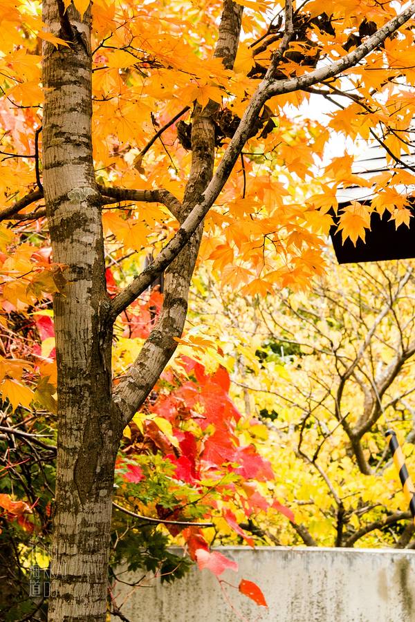 从硫磺山到砂汤这条路上,是最最最最最美的一条路,小路弯曲,两侧全部是满满的秋叶落地