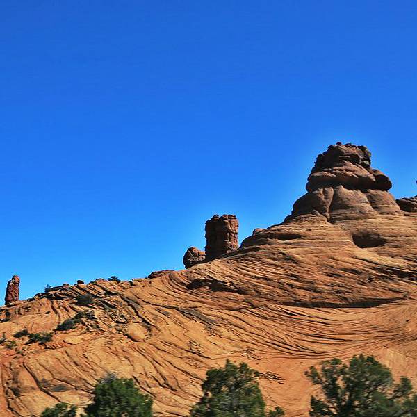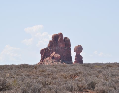 拱门国家公园里的这块平衡石,曾经入选过世界十大最不可思议的平衡石拱门国家公园里的这块平衡石,曾经入选过世界十大最不可思议的平衡石.这块面积有3辆校车大小的平衡石就这么突兀地立在那么上千年,的确不可思议. 实际上在鹅颈谷州立公园附近也有一块叫墨西哥草帽的平衡石.