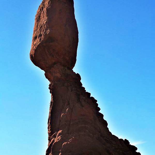 ...致拱门景区里,这块有3辆校车大小的平衡石就这样突兀地站立在那里千年,任风吹雨打不倒,真是神奇啊平衡石位于DELICATE ARCH拱门国家公园的精致拱门景区里,这块有3辆校车大小的平衡石就这样突兀地站立在那里千年,任风吹雨打不倒,真是神奇啊。
