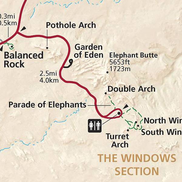 The Windows区域:平衡石 Balanced Rock,双拱门Double Archb. The Windows区域:平衡石 Balanced Rock,双拱门Double Arch