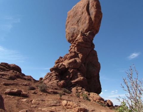 ...行,很奇特的石头,看着觉得要掉落,但它偏偏就在那里稳稳地屹立了好久好久,不得不感叹大自然的神奇平衡石就在拱门公园靠中部位置,开车就会经过,停车后可以绕着平衡石转一圈,半小时左右就行,很奇特的石头,看着觉得要掉落,但它偏偏就在那里稳稳地屹立了好久好久,不得不感叹大自然的神奇