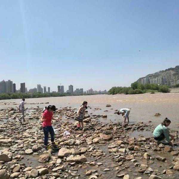 景区开放没有门票。第一次看见眼前的黄河水是青蓝色的,岸边的甚至清澈见底。