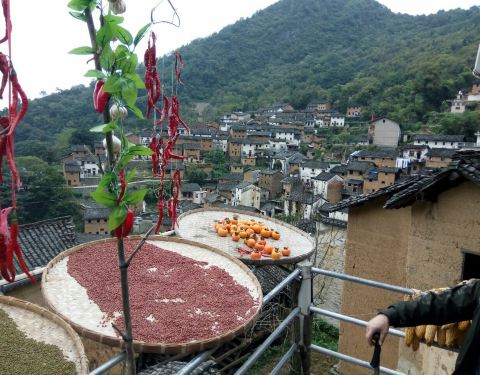 3.村子顶端有个亭子,还有一个晒秋平台, 可以看日落,俯瞰整个阳产土楼