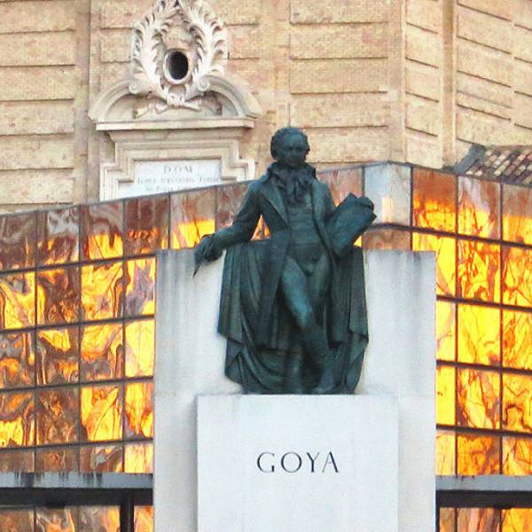 萨拉戈萨是戈雅的故乡。很小就听说过戈雅这个人,他是西班牙浪漫主义画派画家。画风奇异多变,从早期巴洛克式画风到后期类似表现主义的作品,他一生总在改变,虽然他从没有建立自己的门派,但对后世的现实主义画派、浪漫主义画派和印象派都有很大的影响,是一位承前启后的过渡性人物。据说,本来大教堂要戈雅画两幅画,但第一幅画完,并没有被认可,于是只留下了一副。