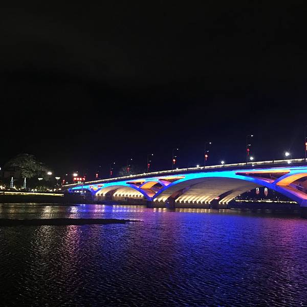 从逍遥楼下来便是漓江边,真的,非常美丽,彩灯结营,两岸景色不一,不远对岸飘来KTV唱歌的音乐,倒是颇为配合。此景此夜色,明月伴晚风。着实让人忘了一天工作的劳累。倒是很愿沉醉于此。闲庭信步,漫漫悠,散步到龙隐路,途中看着漓江,看着不时出现的不名之山,感叹着,啊,这就是桂林,写意,不需要他人打扰。