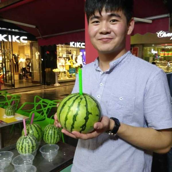 和跟自己一样疯的人在一起,真的是不作不欢啊。去了桂林最有名的小吃街“十字街”,请我喝了一个西瓜,真的是喝掉了整个西瓜。竟然她也是第一次喝到哈哈。15块很小的一个,略贵了,但真的很好喝。