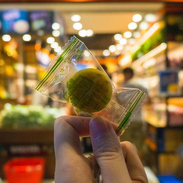 船上糕,绿色是大蒜叶搅的汁弄的,米糕一样,里面的芋头很好吃,咸咸的挺好吃,2元一个