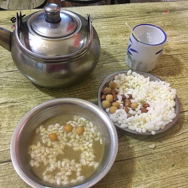 一位3块钱,热上一壶油茶,配上脆米,花生等,放到碗里,泡上油茶,还能加盐巴调味