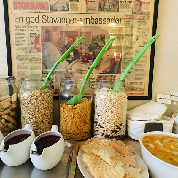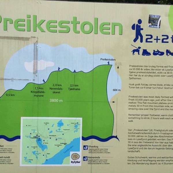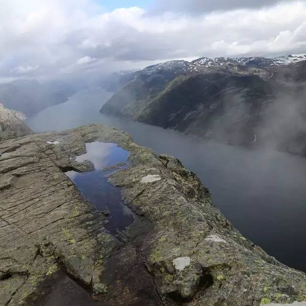 基本上由tide和boreal这2家公司承接,两家公司都是售票员站在码头登船附近卖票,去TAU...今天和老师相约,一起完成布道石徒步。需付费的旅舍早餐,性价比超高,特别是在这样一个小地方,一早要出去觅食实在不太容易。分别用番茄酱和洋葱腌制的海鱼沙拉,酸甜可口,十分好吃,同样如果能配上白粥就更棒...今天和老师相约,一起完成布道石徒步。需付费的旅舍早餐,性价比超高,特别是在这样一个小地方,一早要出去觅食实在不太容易。分别用番茄酱和洋葱腌制的海鱼沙拉,酸甜可口,十分好吃,同样如果能配上白粥就更棒了。斯塔万格出发布道石,从码头fiskepiren乘轮渡到tau、换乘汽车到登山出发点,全程一票制360克朗,可以自己分开单买轮渡52*2克朗和公交车175克朗。这之间的交通,基本上由tide和boreal这2家公司承接,两家公司都是售票员站在码头登船附近卖票,去TAU的ferry在室外,有TAU标牌。轮渡一般在4月中旬至9月运营,最旺季周一至周五8:00-16:00间发船,每日约有12班,周六、周日约有10-11班。峡湾中最著名的当属那块垂直于海平面之上的布道石,它是吕瑟峡湾Lysefjord 中部一块天然形成的巨石,突兀地直立于峡湾深处的崇山峻岭中,被 CNN评为全球50处最壮丽的自然景观之首位。去往布道石的登山之路,也是徒步爱好着喜欢的路线,往返长度8公里。一般上下山各约2.5小时,共6-7小时即可完成。今天天气也不好,出发便开始下淅淅沥沥的小雨,幸好雨势不太大。登山径沿途标有红色的T字标记,一些较难攀爬的地段已在近年修葺了石阶,强度并不大。随着攀登的高度不断上升,能见度不断好转,乌云渐散,蓝天白云出现,大家的心情也豁然开朗。这就是垂直落差604米的布道石,顶部有大约625平方米的平台。观望吕瑟峡湾的绝美视角。 展开