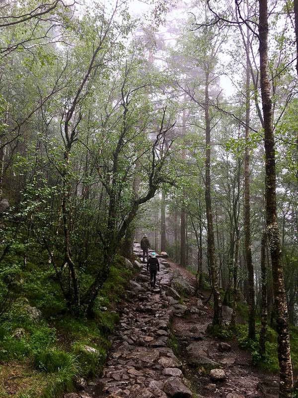 峡湾气候多变,计划中的攀登布道石只有在烟雨飘渺的寒风中出发了。 展开
