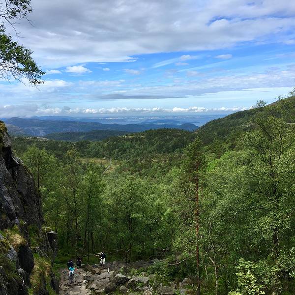 在一块非常平整的岩石山脊上会有一个上厕所的好地方。只要是运动鞋,也没必要去租登山鞋景色优美等等就不说了,只说几个自驾重点。我是从斯塔万格开车去的布道石,加上轮渡大概50分钟,轮渡费用:汽车和三个人134挪威克朗。停车场也改为自动门禁收费停车场。出门在栏杆的机器上刷信用卡,我停了5个小时...景色优美等等就不说了,只说几个自驾重点。我是从斯塔万格开车去的布道石,加上轮渡大概50分钟,轮渡费用:汽车和三个人134挪威克朗。停车场也改为自动门禁收费停车场。出门在栏杆的机器上刷信用卡,我停了5个小时,收了250挪威克朗。不知道是不是50块钱一小时。但是上下山至少得5个小时。 登山时运动鞋也没问题,至于湿鞋的问题,是因为雨后溪水没有退去。我那天是雨停后一小时去的,鞋一点都没湿,溪水完全退去。只要是运动鞋,也没必要去租登山鞋。路还是有的,只是就地的石头铺成的。在湿地上也搭了一些木头栈桥。 建议上山的时候只要不是下午5点以后,可以边走边玩儿,路途也有很多景色,等你下山的时候人很累,就没有心境去欣赏,停留了。 重点来了,夏天一定要带一件可换的上衣,我是穿了一件T恤,一件外套,里面汗透了,到了山顶风一吹,冷的不行。上去把湿衣一换,虽然只有十几度的温度,但不会觉得冷。 还有上厕所的问题,其实不必焦虑,汗一流也不会有那么的迫切感。在一块非常平整的岩石山脊上会有一个上厕所的好地方。去的左侧有一片沟壑,也是看风景的好地方。 展开