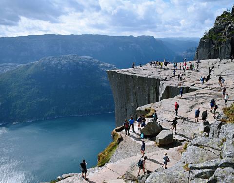 从斯塔万格市出发,需先从斯塔万格港口...布道台常常出现在挪威的明信片上,是吕瑟峡湾上的一个户外徒步景点。悬崖高600多米,下面就是吕瑟峡湾,有很多人会坐在悬崖边上拍下一张照片,作为勇敢者的纪念。