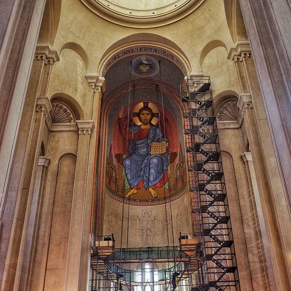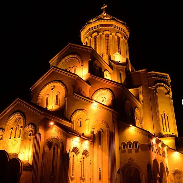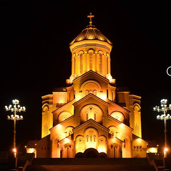 从Moedani 广场走过Metekhi 桥到达库拉河右岸, 在转盘处第一个出口向Wine Rise 街上行至尽头, 沿着NikolozBaratashvili 继续走到Avlabari 广场, 沿着LadoMeskhvili 继续向东北行走, 在Samreklo 街右转, 前行至Gumbri街继续右转,可见圣三一教堂入口,步行需要20 分钟。