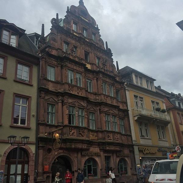 这栋红砖的建筑一看就好沧桑,是海德堡最老的房子了,幸运的躲过了二战的炮火,因而比周边建筑更有历史感