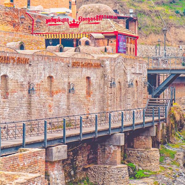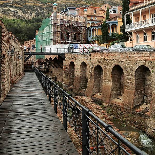 得益于优越的自然环境,第比利斯因天然含硫矿物温泉而得名,而相传搓澡师是第比利斯最古老的职业,温泉更曾经是第比利斯人生活中不可或缺的一部分,甚至成为了一位国王迁都的理由。硫磺温泉的魅力如此之大,令法国作家大仲马和俄罗斯诗人普希金也为其倾倒。正如普希金所言,在第比利斯泡温泉是“从未感受过的奢侈的享受”。Abanotubani 是第比利斯老城区拥有众多硫磺温泉浴室的浴室一条街,这里就是传说中国王瓦赫坦一世打猎时发现温泉的地方。在这些用红砖垒成的圆形堡垒内,就是大名鼎鼎的硫磺浴室。如果你选择公共浴室( 男女分开),与陌生人赤裸裸地坦诚相见,花费就很便宜;若选择私人浴室,价格则稍贵,但绝对物有所值。在泡温泉之余,还可以在这里享受土耳其式按摩服务。