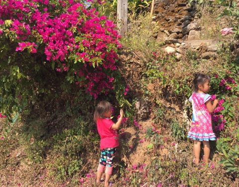 再走進村莊小徑,巧遇一群玩耍的村民小孩,看著他們採著三角梅,真是可愛,快樂可以很簡單素貼山上的苗族村,只有一條商業化的紀念品街,沒辦法看到村民原始生活樣貌了。再走進村莊小徑,巧遇一群玩耍的村民小孩,看著他們採著三角梅,真是可愛,快樂可以很簡單。