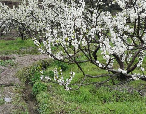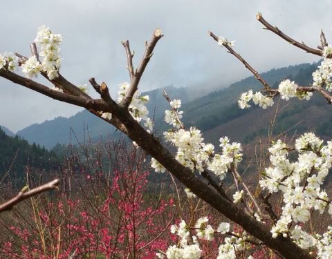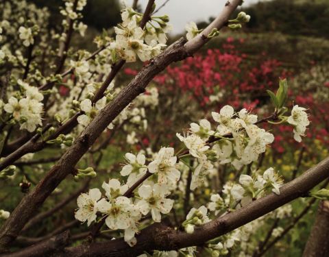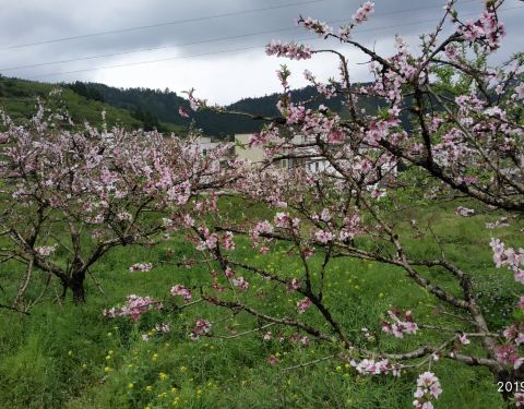 境内九座山峰连绵,花期时这里有成片的桃花、梨花、李花,恍若世外桃源。